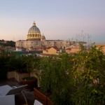 • Coucher du soleil sur la terrasse de notre chambre d'hôte face au dôme de la basilique Saint Pierre
